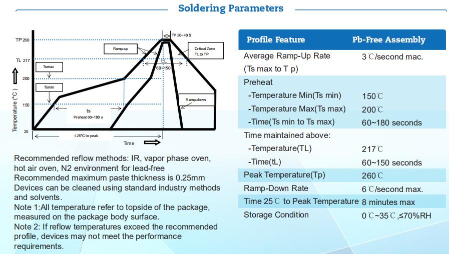 ASMD2920-700貼片可恢復保險絲支持的焊接方式有兩種,一種是波峰焊,一種是手工焊,詳細焊接參數如下圖: